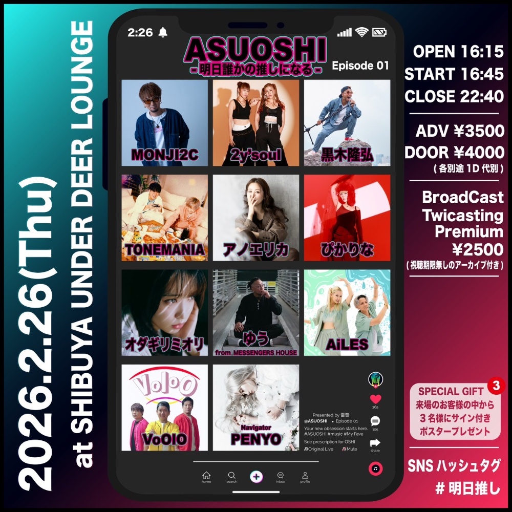 Cast:MONJI2C / 2y’soul / 黒木隆弘 / TONEMANIA / アノエリカ / ぴかりな / オダギリミオリ / ゆう from MESSENGERS HOUSE / AiLES / VoOlO