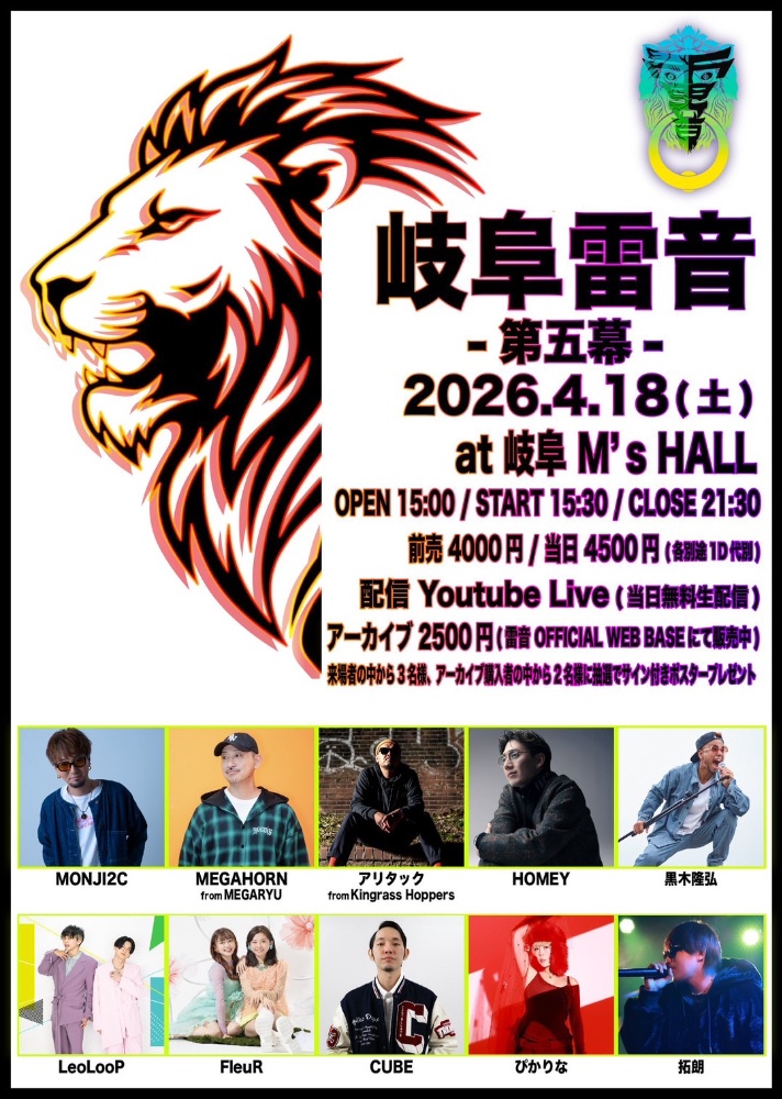 アーカイブ:雷音BASE SHOP 2500円(視聴期限なし) / 3000円(DVD付き)
